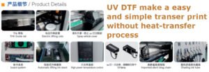 UV-DTF Printer could print with UV Ink to the sticker film A which with glue coated. During the printing process this film A would be laminated with a film B which is the transfer film. Finally this transfer film B could transfer the image to any hard surface directly without heating process. This process is quite fast, easy and simple, so make it so popular in sign and advertising business. As it could apply to almost any hard and smooth surface like glass bottles ,cups ,acrylic material, ceramic material ,plastic, papers, wood, stone, etc any smooth surface no matter it is flat or round it would works fine with fast image transfer without any heat transfer process. The image of UV-DTF is high clarity, and durability. It would make your sign business growth quickly in such areas where your clients needs